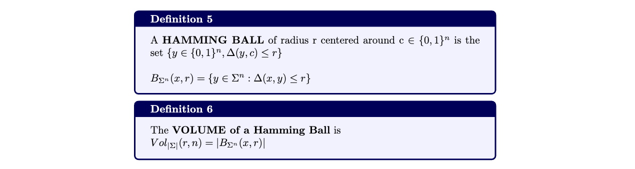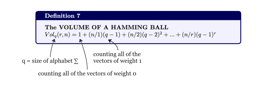 Using the definition for the volume of the Hamming Ball, we can define the following:
