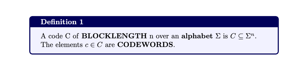 To start off, there are a couple of assumptions we’ll make. All messages that we want to send are binary strings and we will only be transmitting binary strings across the channel and the only errors that occur are bit-errors, which consist of replacing 0 by 1 or 1 by 0.